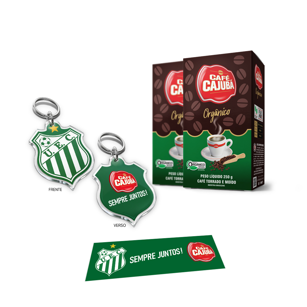 COMBO 2 unidades do café Cajubá Orgânico Moído 250g + 1 adesivo Sempre Juntos! + 1 chaveiro UEC.
